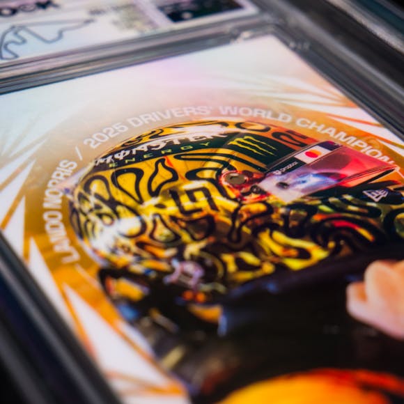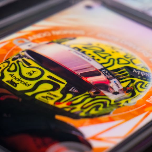 This is no ordinary Armour Artworks release. This piece celebrates Lando's first WDC with his season helmet surrounded by team photos and his championship crest. This drop includes only one variant but is SSP, with only 5 being made in the world, plus a separate 1/1 variant with his gold championship helmet being auctioned off.